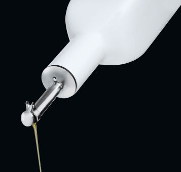 Ölflasche Mezzo, Inhalt 0,5 L, 6x6x30,5 cm, Kombination von Hartporzellan mit poliert em Edelstahl