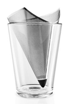 Im kegelförmigen Teefilter haben die Teeblätter ausreichend Raum, um ihr Aroma optimal zu entfalten. Der Edelstahlfilter ist mit einer Silikonspitze versehen, die Kratzer am Boden des Teeglases oder der Teetasse verhindert. Im Gegensatz zum Papierfilter werden die Aromastoffe des Tees – die ätherischen Öle – nicht herausgefiltert. Die obere Kante des Filters bleibt kalt, damit der Filter leicht entfernt werden kann, wenn der Tee fertig ist.