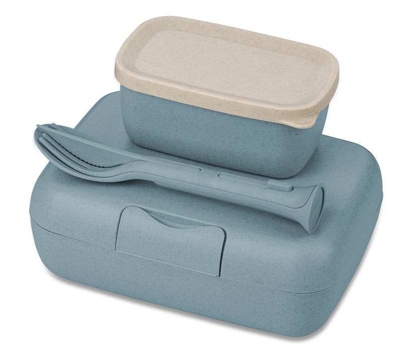 Koziol Lunchbox-Set + Besteck-Set Candy Ready nature flower blue