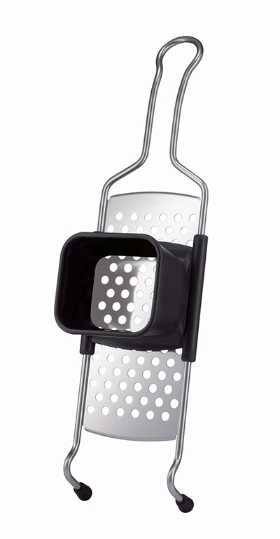 Zum Zubereiten von „Allgäuer Spätzle“. Der Hobel besteht aus zwei Teilen: der Reibe und dem Trichteraufsatz aus Kunststoff. Die konische Form des Trichters gewährleistet eine zügige und vollständige Verarbeitung des Teiges. Einfache Reinigung.
